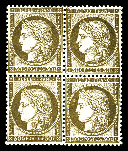 1085 imageN°56, 30c brun en bloc de quatre, bon centrage, fraîcheur postale. SUPERBE. R.R.R. (certificat) Qualité: ** (Image) (image2) (All Images)