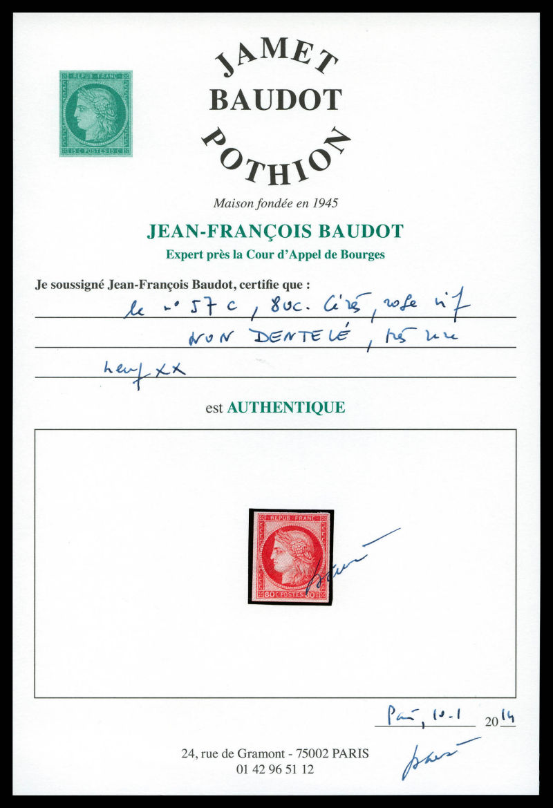 1095 imageN°57a, 80c carmin-rose, fraîcheur postale. SUP (signé/certificat) Qualité: ** (Image) (image2) (All Images)