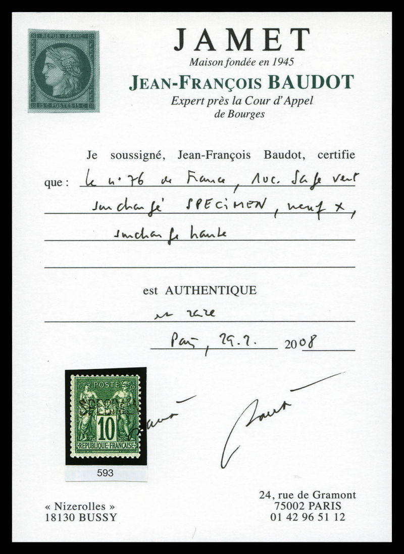 1224 imageN°76, 10c vert type II surchargé SPECIMEN. SUP. R. (signé/certificats) Qualité: * (Image) (image2) (All Images)