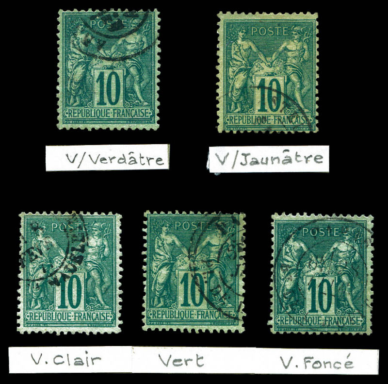 1225 imageN°76, 10c Sage Type II: 5 exemplaires avec nuances différentes. TB Qualité: Oblitéré (Image)