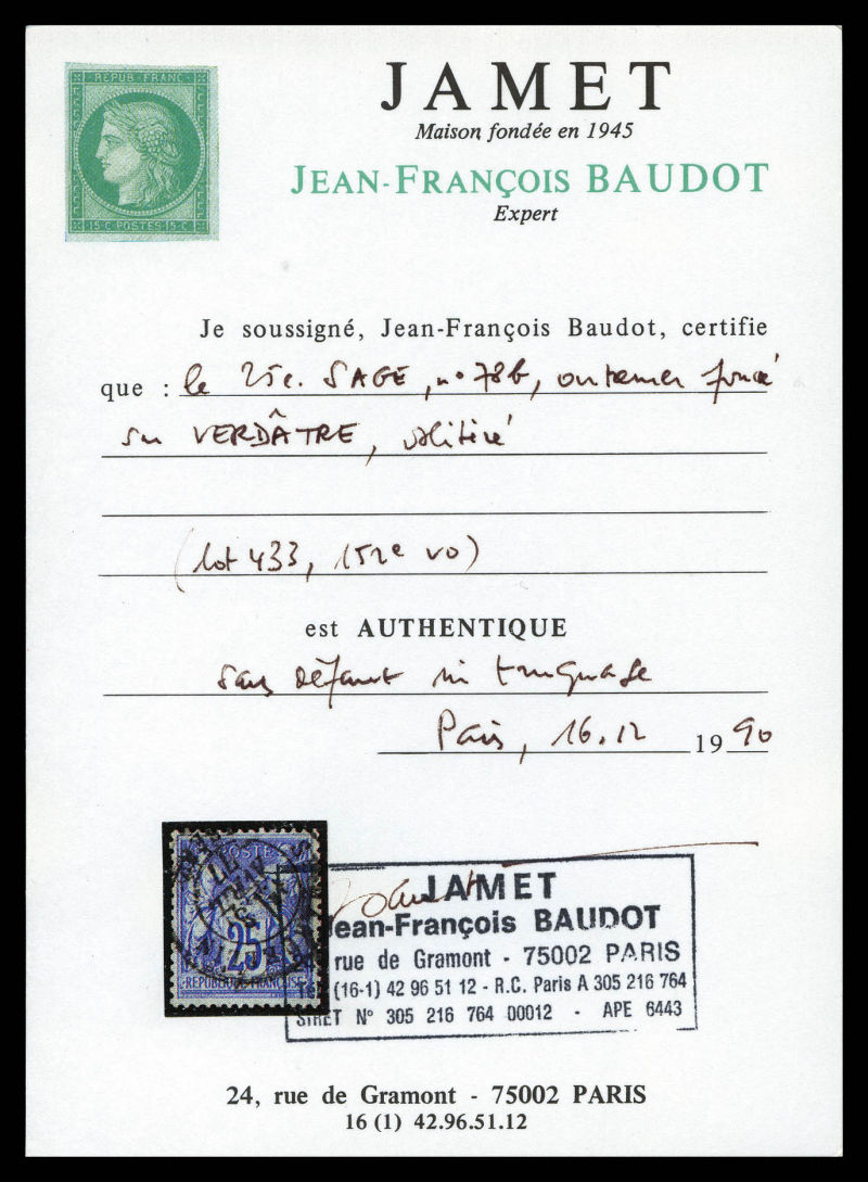 1228 imageN°78b, 25c outremer sur vert clair type II, très bon centrage. SUP (certificats) Qualité: Oblitéré (Image) (image2) (All Images)