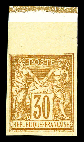 1233 imageN°80b, 30c brun type II non dentelé, haut de feuille. SUP (signé Brun/certificat) Qualité: ** (Image)