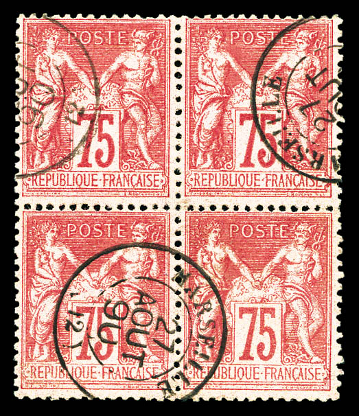 1236 imageN°81, 75c rose type II en bloc de quatre, bon centrage. SUP. R. (signé/certificat) Qualité: Oblitéré Cote: 1200 euros (Image)