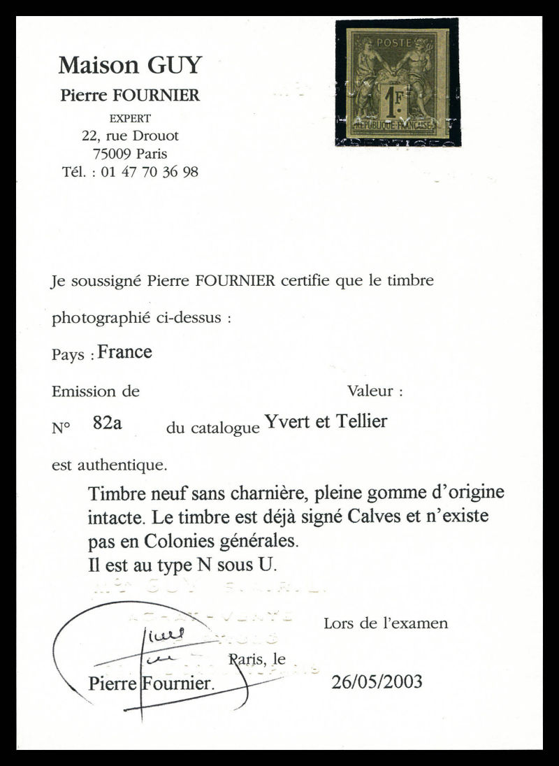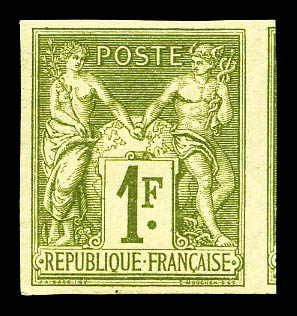 1239 imageN°82a, 1 fr olive clair type II non dentelé avec un voisin. SUPERBE. R.R. (signé Calves/certificats) Qualité: ** (Image) (image2) (All Images)