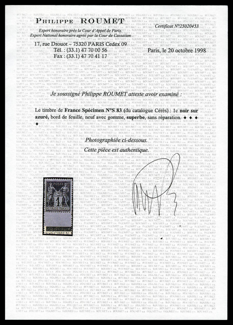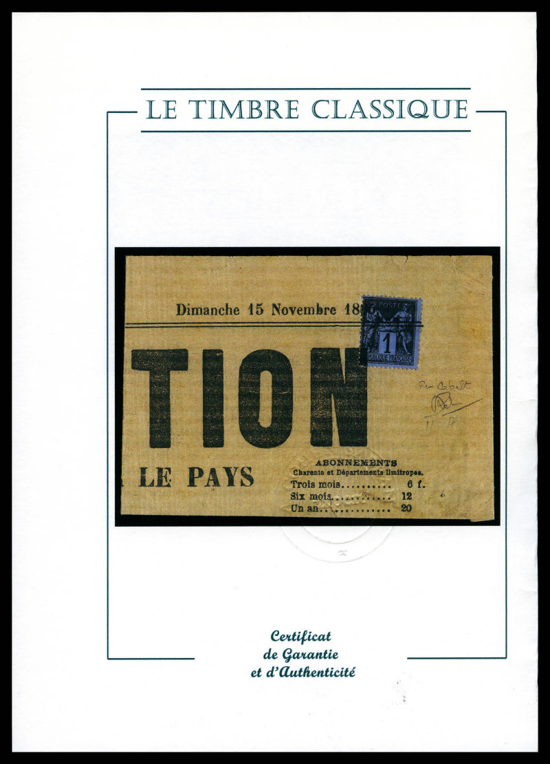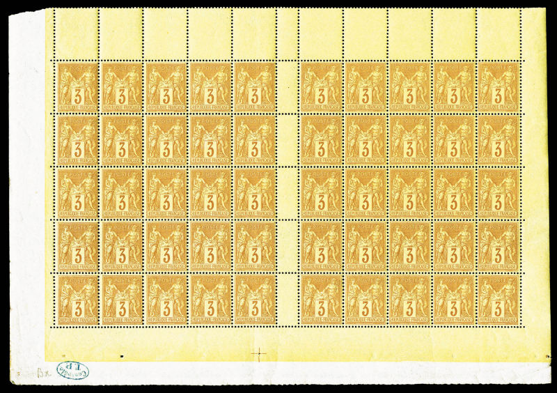 bistre sur jaune, panneau de 50 exemplaires SANS MILLESIME, bas de feuille avec croix de repère et cachet de contrôle, fraîcheur postale, très bon centrage, SUPERBE (certificat) Qualité: ** (Image)