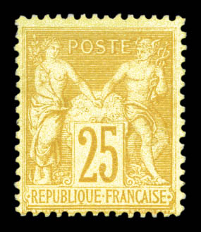 1282 imageN°92, NON EMIS, 25c bistre TYPE I (au lieu de type II), tirage de l'exposition de 1900, quelques exemplaires connus. SUPERBE. R.R. (signé Brun/certificats) Qualité: (*) (Image)