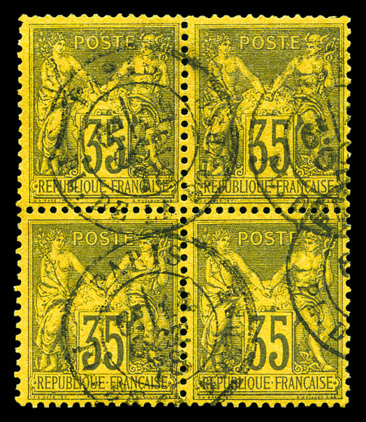 1284 imageN°93, 35c violet-noir sur jaune en bloc de 4. TB Qualité: Oblitéré Cote: 400 euros (Image)