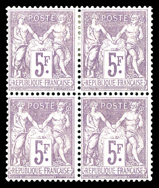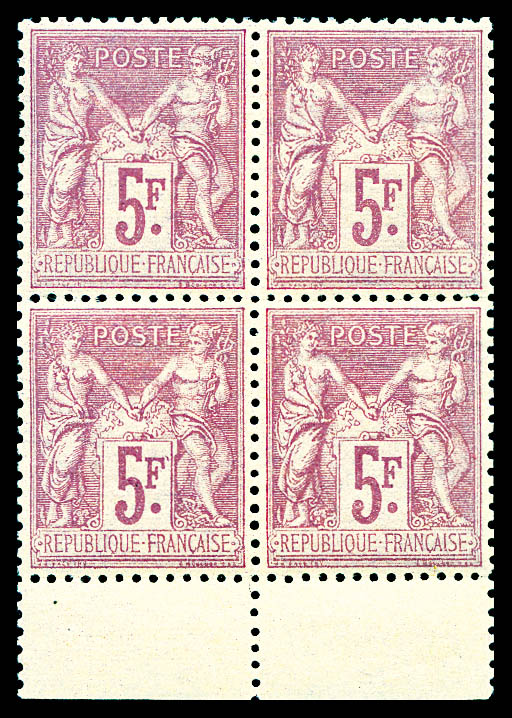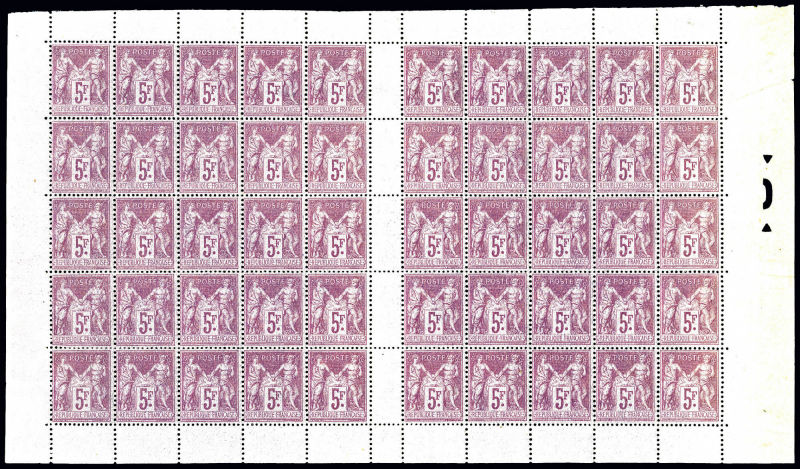 1294 imageN°95a, 5F lilas-rose sur lilas pâle, panneau de 50 exemplaires SANS MILLESIME, tirage de 1890, bon centrage, fraîcheur postale. SUPERBE. R.R.R. (certificats) Qualité: ** (Image)