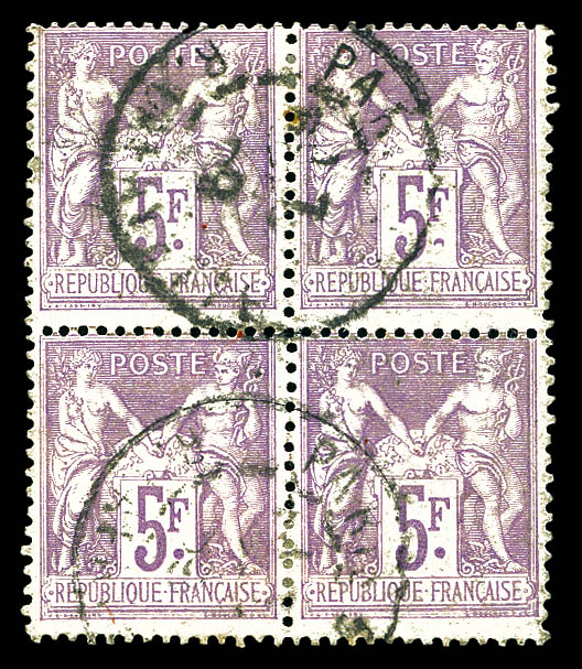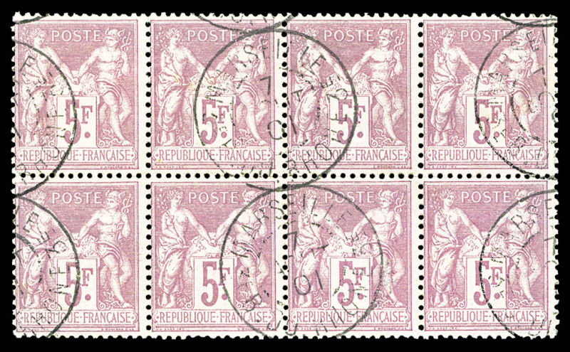 1298 imageN°95a, 5F lilas-rose sur lilas pâle en bloc de huit exemplaires, SUP (certificat) Qualité: Oblitéré (Image)