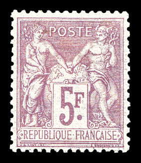 1296 imageN°95a, 5F lilas-rose sur lilas-pâle, fraîcheur postale, TTB (signé Calves/Margues/certificat) Qualité: ** (Image) (image2) (All Images)