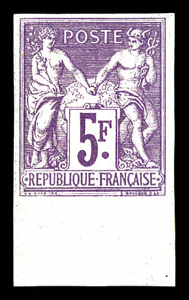 1300 imageN°95e, 5F violet sur lilas NON DENTELÉ, bas de feuille, fraîcheur postale, RARE (certificat) Qualité: ** (Image) (image2) (All Images)
