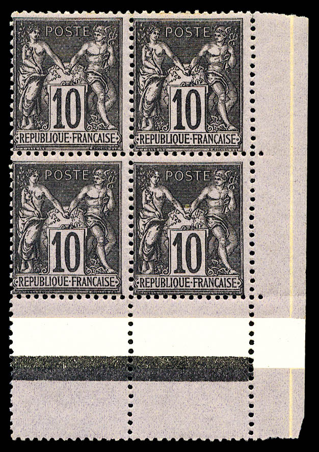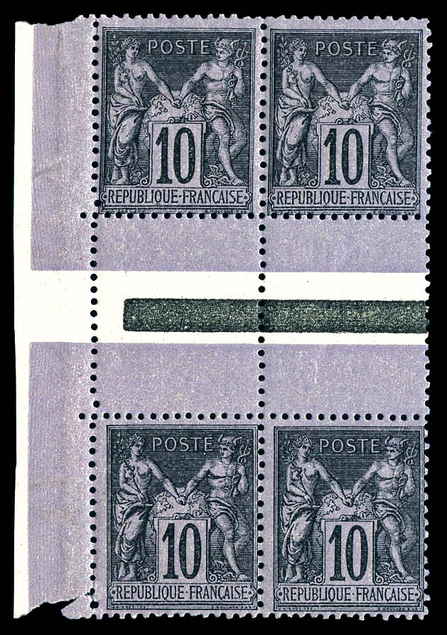 1322 imageN°103b, 10c noir sur lilas: 2 paires Type I et II se tenant en bd4 bdf, fraîcheur postale. SUP (certificat) Qualité: ** Cote: 1500 euros (Image) (image2) (All Images)