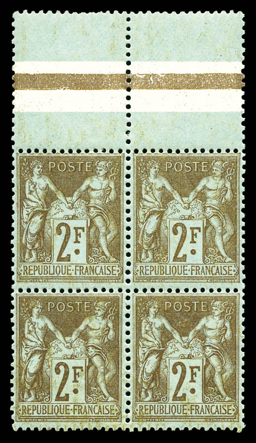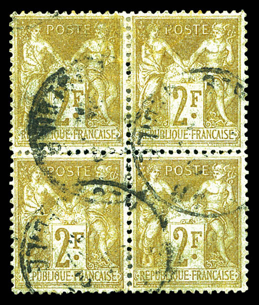 1326 imageN°105, 2F bistre sur azuré en bloc de quatre, TTB (certificat) Qualité: Oblitéré Cote: 575 euros (Image)