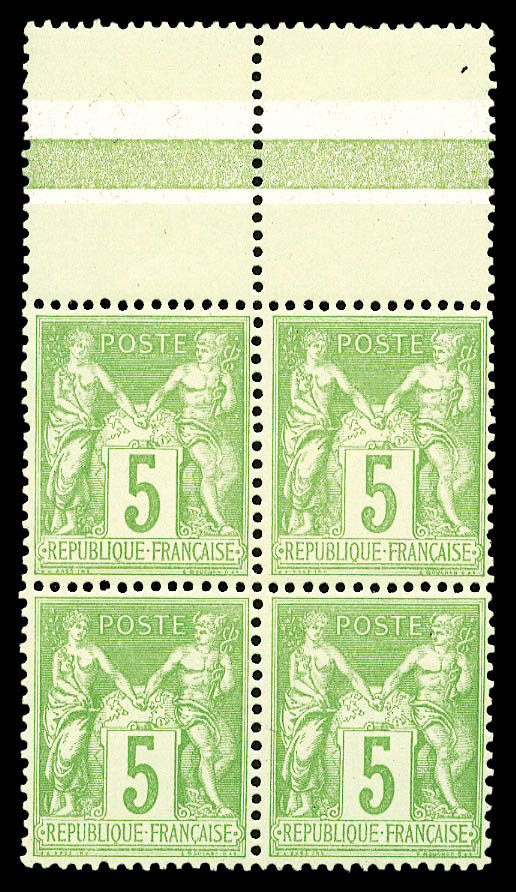 1329 imageN°106, 5c vert-jaune type II, bloc de 4 bdf, très bon centrage. TB Qualité: ** (Image)