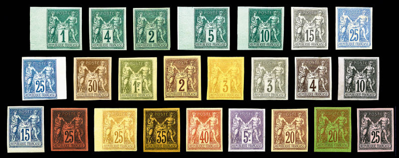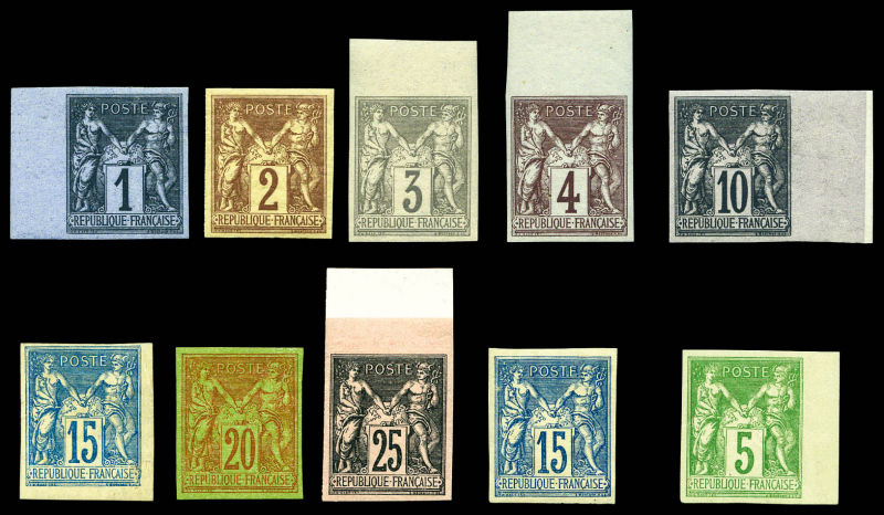 1330 imageSage non dentelés: N°83d, 85b, 87c, 88c, 89b, 90b, 96b, 97b, 101b et 106c, les 10 valeurs SUP (certificat) Qualité: ** (Image)