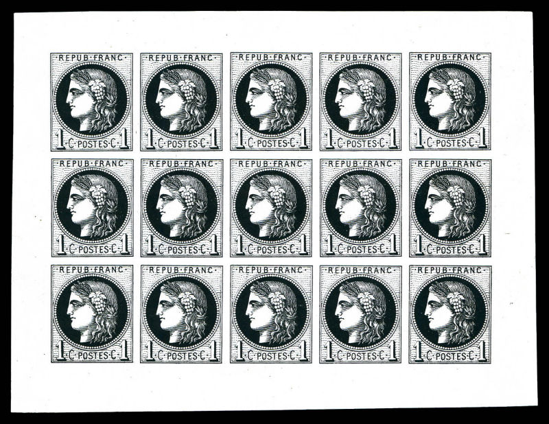 1365 imageN°39C, 1c Report 3, essai en noir, bloc report complet de 15 exemplaires. SUPERBE. R.R.R. (certificats) Qualité: (*) Cote: 11000 euros (Image) (image2) (All Images)