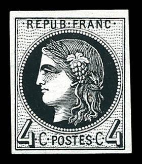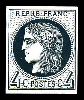 1369 imageN°41A, 4c Bordeaux Report 1, essai en noir. SUP (signé Brun/certificat) Qualité: (*) Cote: 1000 euros (Image)