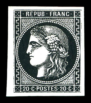 1362 image20c Lauré: épreuve avec la valeur en noir sur chine. TTB. R. (Certificat) Qualité: (*) Cote: 1000 euros (Image)