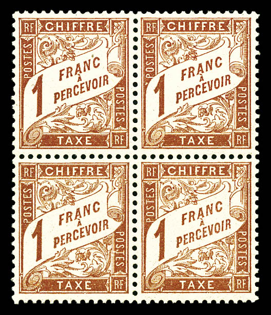 1453 imageN°25, 1F marron en bloc de quatre, très bon centrage, fraicheur postale, SUP (signé Calves/certificat) Qualité: ** (Image) (image2) (All Images)