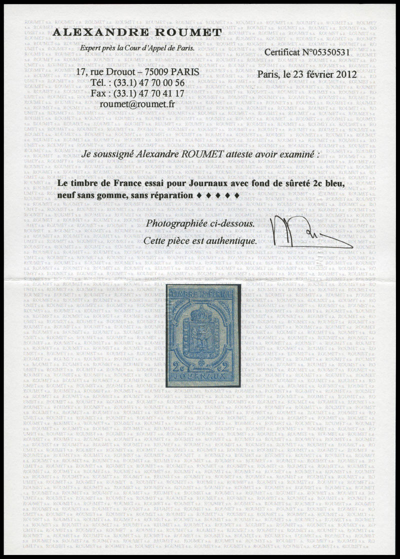 1460 imageN°2, 2c bleu. TB (signé Calves/certificat) Qualité: * Cote: 700 euros (Image)