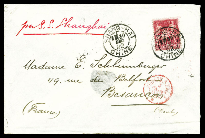 1568 imageN°98, 50c rose type II obl càd SHANGHAI CHINE du 30 dec 92 sur lettre pour BESANCON. TB (certificat) Qualité: Oblitéré (Image)