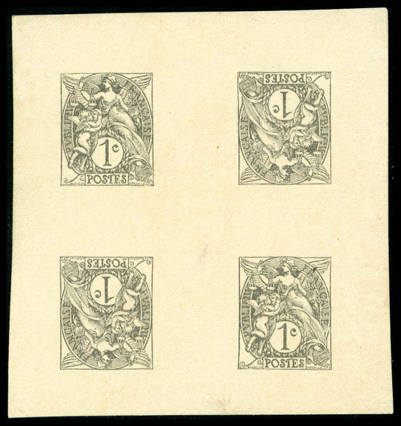 1571 imageN°108, 2c brun-lilas non dentelé: 1 ex. NON IMPRIME et les 3 autres impression partielle en bloc de quatre cdf, spectaculaire, TTB (certificat) Qualité: ** (Image)