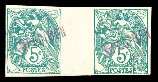 1574 imageN°111, 5c Blanc non dentelé avec surcharges 'SPECIMEN' en violet en paire avec interpanneau. TTB. R. (signé Brun/certificat) Qualité: * (Image)