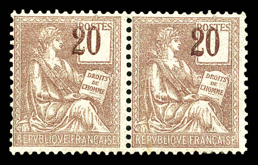1576 imageN°113, 20c Mouchon, chiffres très foncés et très déplacés en paire. SUP (certificat) Qualité: * (Image)