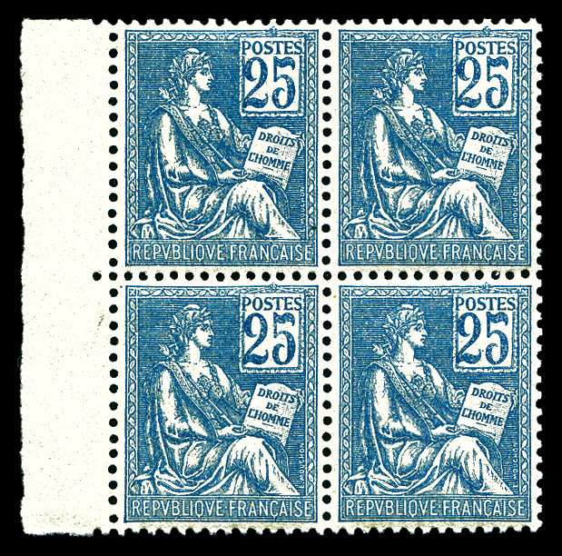 1579 imageN°114, 25c bleu type I en bloc de quatre bdf, très bon centrage, TTB (certificat) Qualité: ** Cote: 3420 euros (Image) (image2) (All Images)
