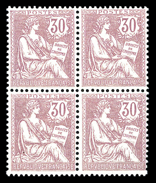 1641 imageN°128, 30c Mouchon en bloc de quatre, très bon centrage, SUPERBE (certificat) Qualité: ** Cote: 9450 euros (Image) (image2) (All Images)