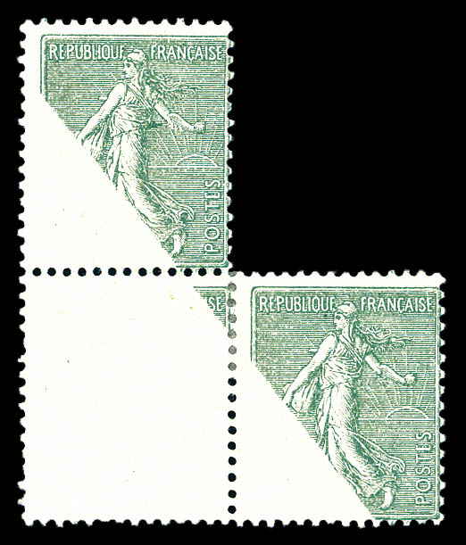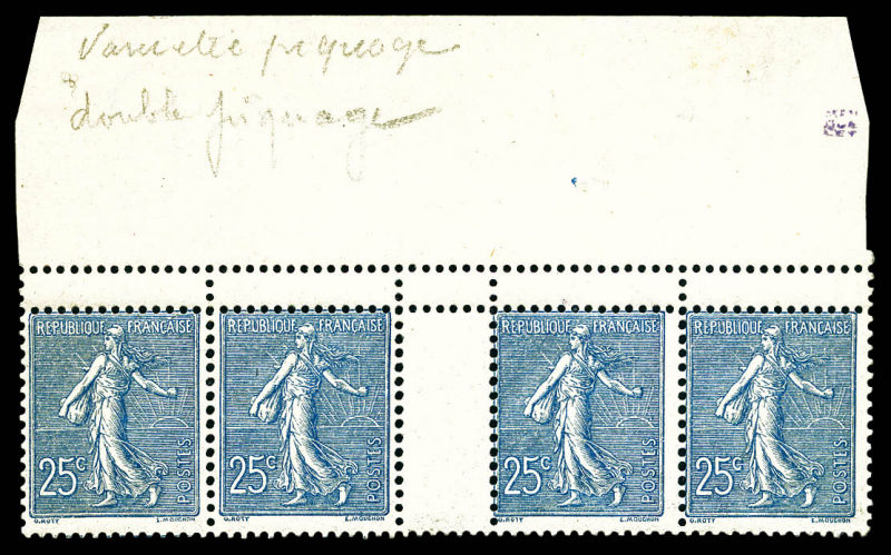 1654 imageN°132, 25c Semeuse: double piquage sur bande de 4 haut de feuille. SUP (certificat) Qualité: ** Cote: 2960 euros (Image)