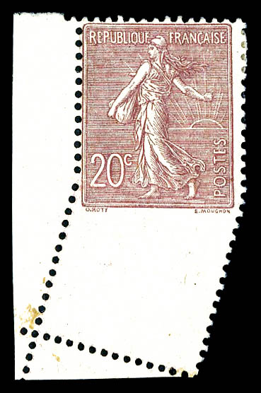 1653 imageN°131i, 20c Semeuse, piquage oblique par pliage cdf. SUP Qualité: * (Image)