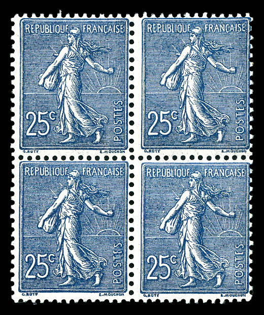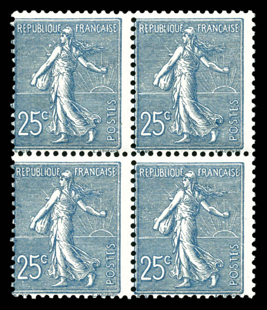 1659 imageN°132a, 25c Semeuse, bleu foncé en bloc de quatre. TB (certificat) Qualité: ** Cote: 960 euros (Image)