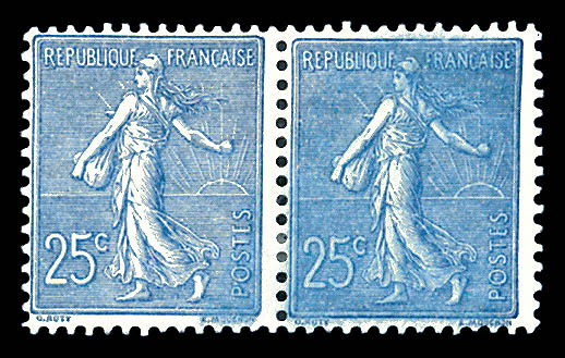1656 imageN°132, 25c Semeuse, exemplaire impression floue tenant à normal. TTB (certificat) Qualité: * (Image)