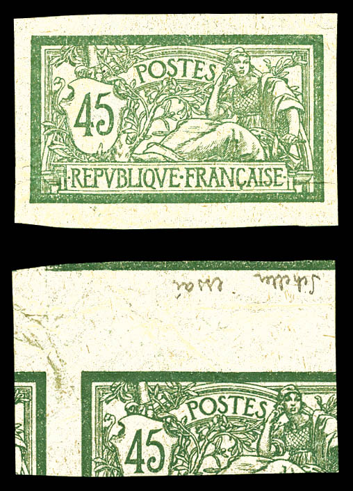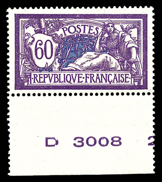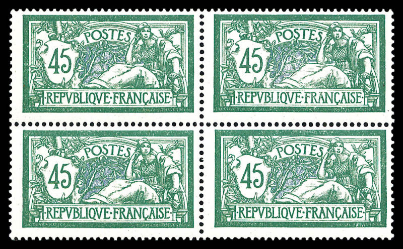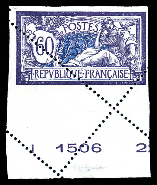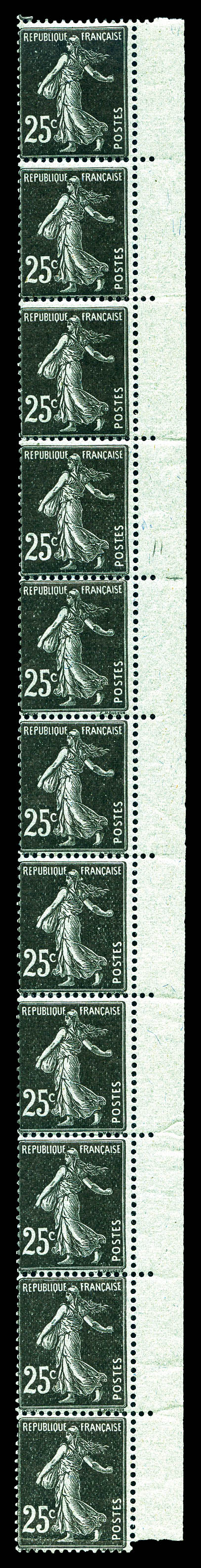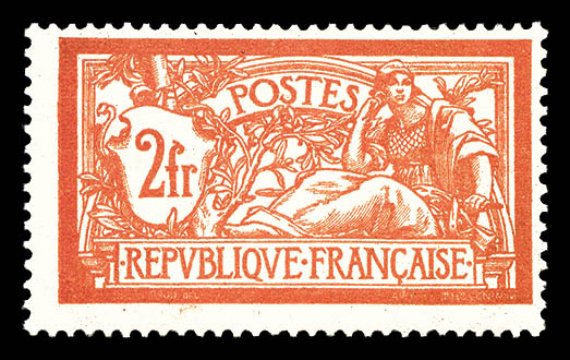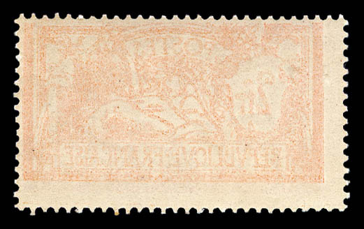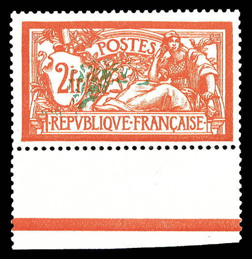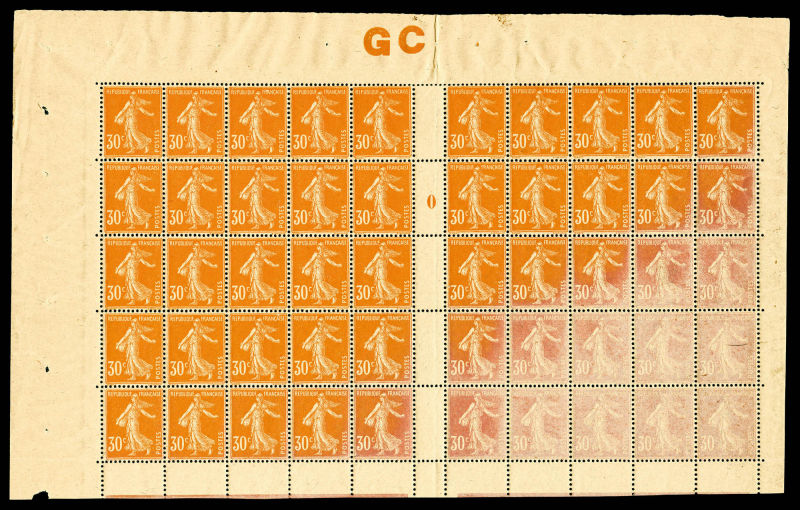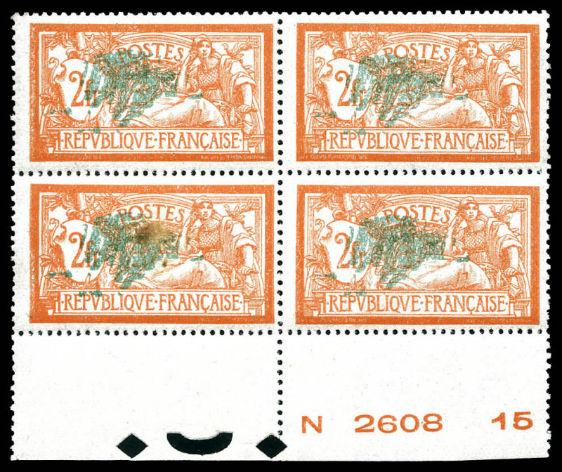 Merson, 2f orange, SANS teinte de fond, panneau complet de 25 exemplaires avec croix de repère, perforation de contrôle et numéro. SUP. R.R. (certificats) Qualité: ** Cote: 15000 euros (Image)