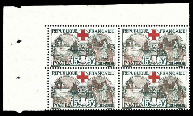 1725 imageN°156, Infirmière, 15c +5c noir et rouge en bloc de quatre cdf, TTB (certificat) Qualité: ** Cote: 1200 euros (Image)