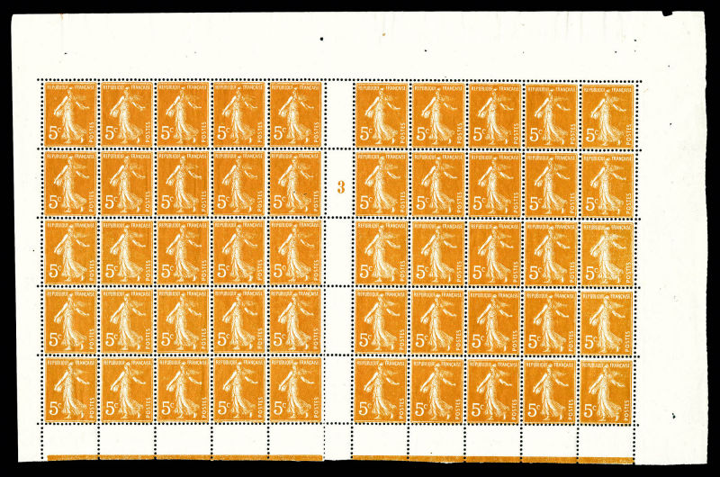 1729 imageN°158f, 5c orange, impression recto-verso en feuille complète de 50 exemplaires. SUP (certificat) Qualité: ** Cote: 4840 euros (Image) (image2) (All Images)