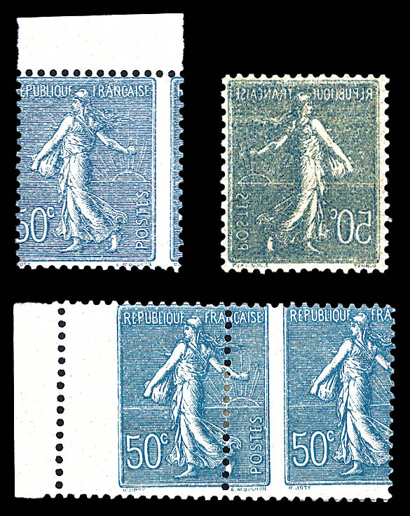 1730 imageN°161, 50c Semeuse, piquage à cheval en paire bdf* + ex bdf et impression recto-verso. TB Qualité: ** Cote: 625 euros (Image)