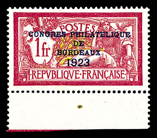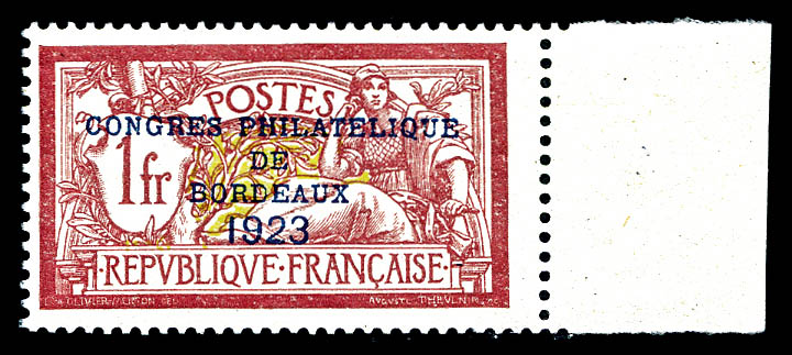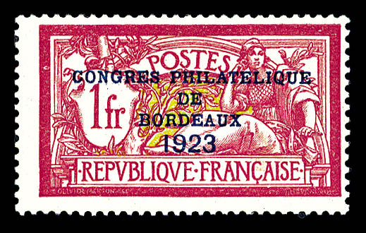 1737 imageN°182, Congrès de Bordeaux de 1923, très bon centrage, SUP (signé Brun/certificat) Qualité: ** Cote: 1500 euros (Image) (image2) (All Images)