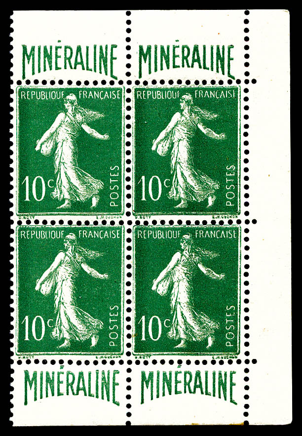 1745 imageN°188A, Minéraline, 10c vert en bloc de 4 bdf, très bon centrage, SUP (certificat) Qualité: ** Cote: 4200 euros (Image)