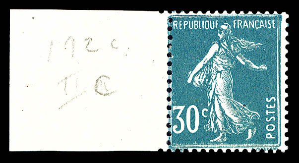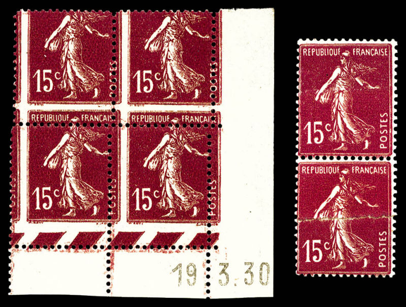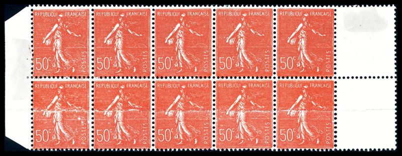 1755 imageN°199i, 50c Semeuse, impression sur raccord en bloc de 10 exemplaires bdf. SUP (certificat) Qualité: ** Cote: 825 euros (Image)