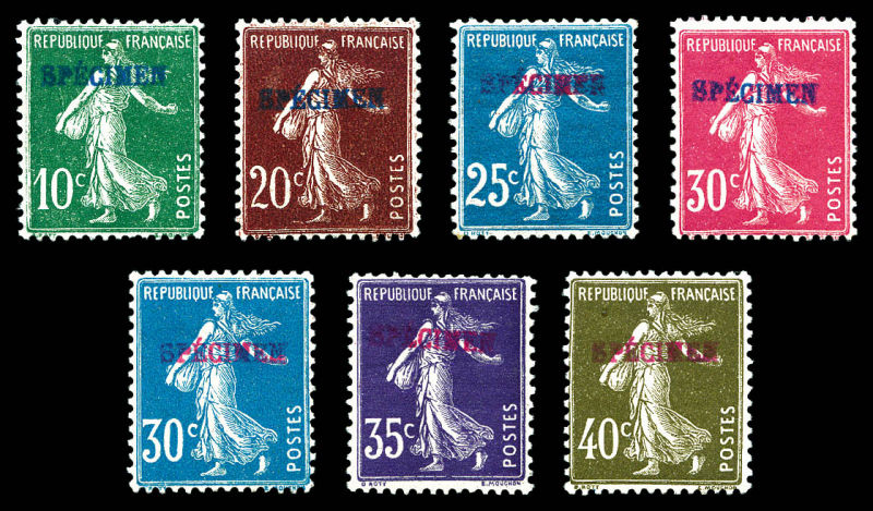 1754 imageN°139, 140, 142, 159, 191, 192 et 193, les 7 valeurs surchargées SPECIMEN (bleu et rouge). SUP. R (certificat) Qualité: * (Image)