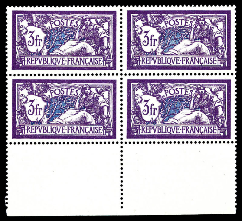 1759 imageN°206, 3F violet et bleu en bloc de quatre bdf, très bon centrage, SUP Qualité: ** Cote: 360 euros (Image)