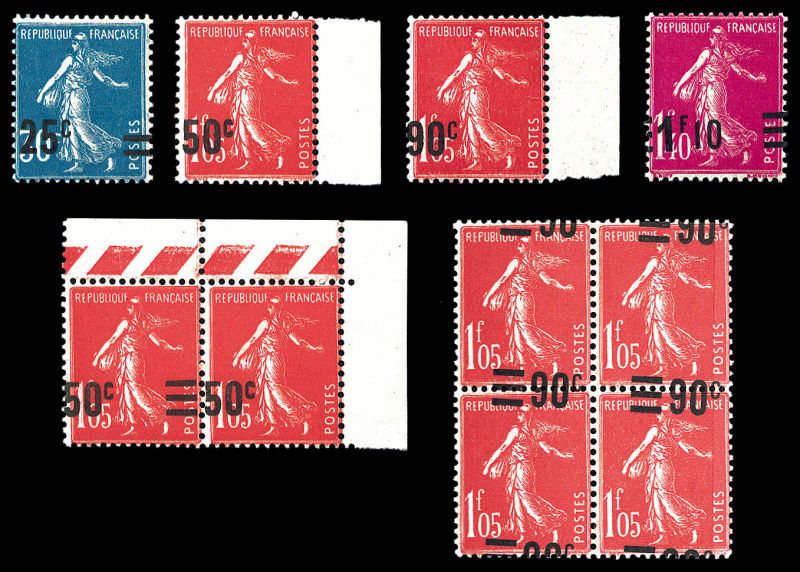 1779 imageN°217h, 225d, 225c et 225d se tenant, 227 surcharge à cheval bd4, 227c et 228b, les 10 variétés TTB Qualité: ** Cote: 1715 euros (Image)