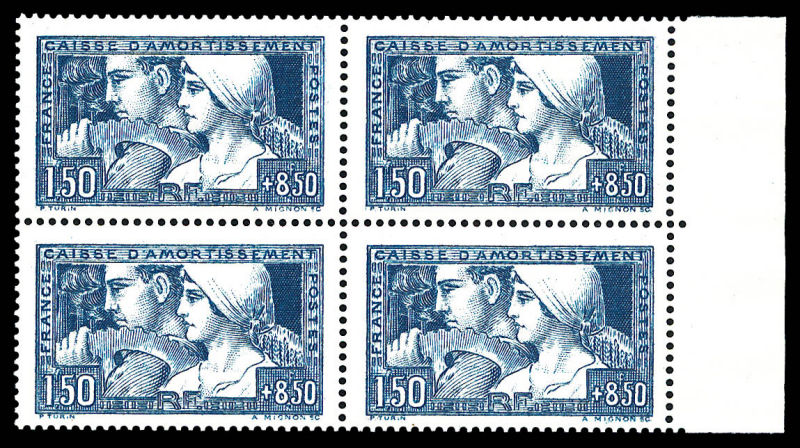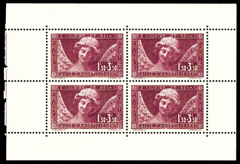 1813 imageN°256a, Sourire de Reims: 1F50 +3F50 lilas bloc de quatre provenant de carnet, TB Qualité: ** Cote: 660 euros (Image)