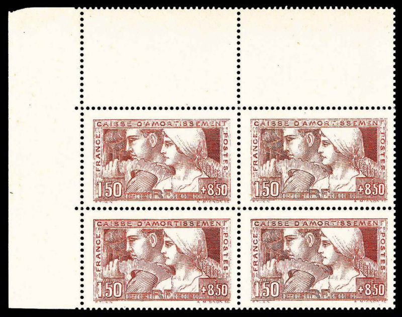 1808 imageN°252, Travail: 1f50 +8f50 rouge sur papier carton, tirage du service intérieur en bloc de quatre coin de feuille, TRÈS JOLIE PIECE, RARE (certificat) Qualité: (*) (Image)