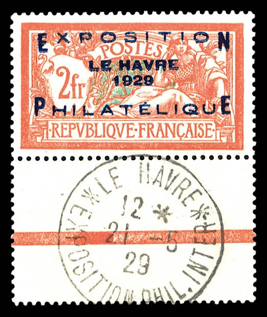 1816 imageN°257A, Exposition du Havre de 1929, très bon centrage bdf avec cachet de l'expo. SUP (certificat) Qualité: ** Cote: 2750 euros (Image) (image2) (All Images)