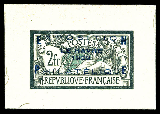 1820 imageN°257A, Exposition du Havre 1929, essai non dentelé en ardoise et vert-bleu, GRANDE RARETE, SUPERBE (signé Champion/certificat) Qualité: (*) (Image)