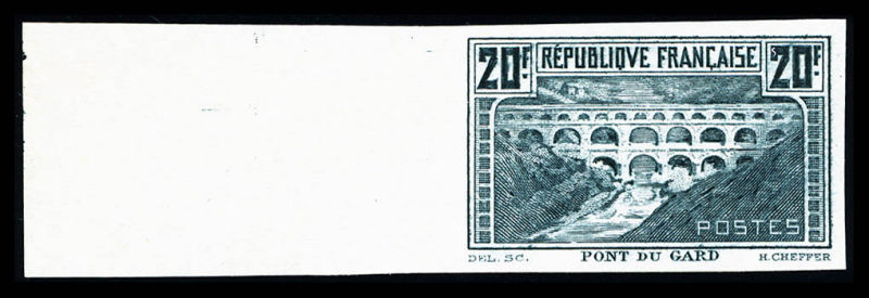 1861 imageN°262, Pont du Gard, épreuve de couleur: 20F BLEU-VERT non dentelé, bord de feuille latéral, SUPERBE et R.R.R. (certificat) Qualité: (*) (Image)
