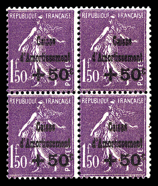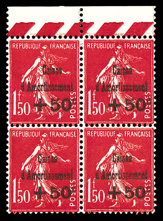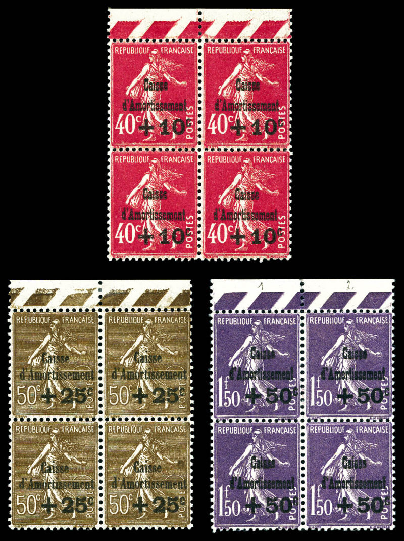 1864 imageN°266/268, Série Caisse d'amortissement de 1930 en bloc de quatre bdf numéroté, TTB (certificat) Qualité: ** Cote: 1680 euros (Image)